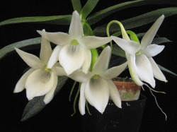 Due to limited growing space, Peter likes to specialize in miniature orchids, both species and hybrids, and he has received numerous AOS awards. His interests in orchids include Dendrobiums, Angraecoids, and Neofinetias. He is also known as “Mr. Sophronitis” as he has a passion for growing and collecting them. He maintains a collection of a thousand or more orchids at his home in Southern California in three small greenhouses, outdoors, as well as at an offsite greenhouse.